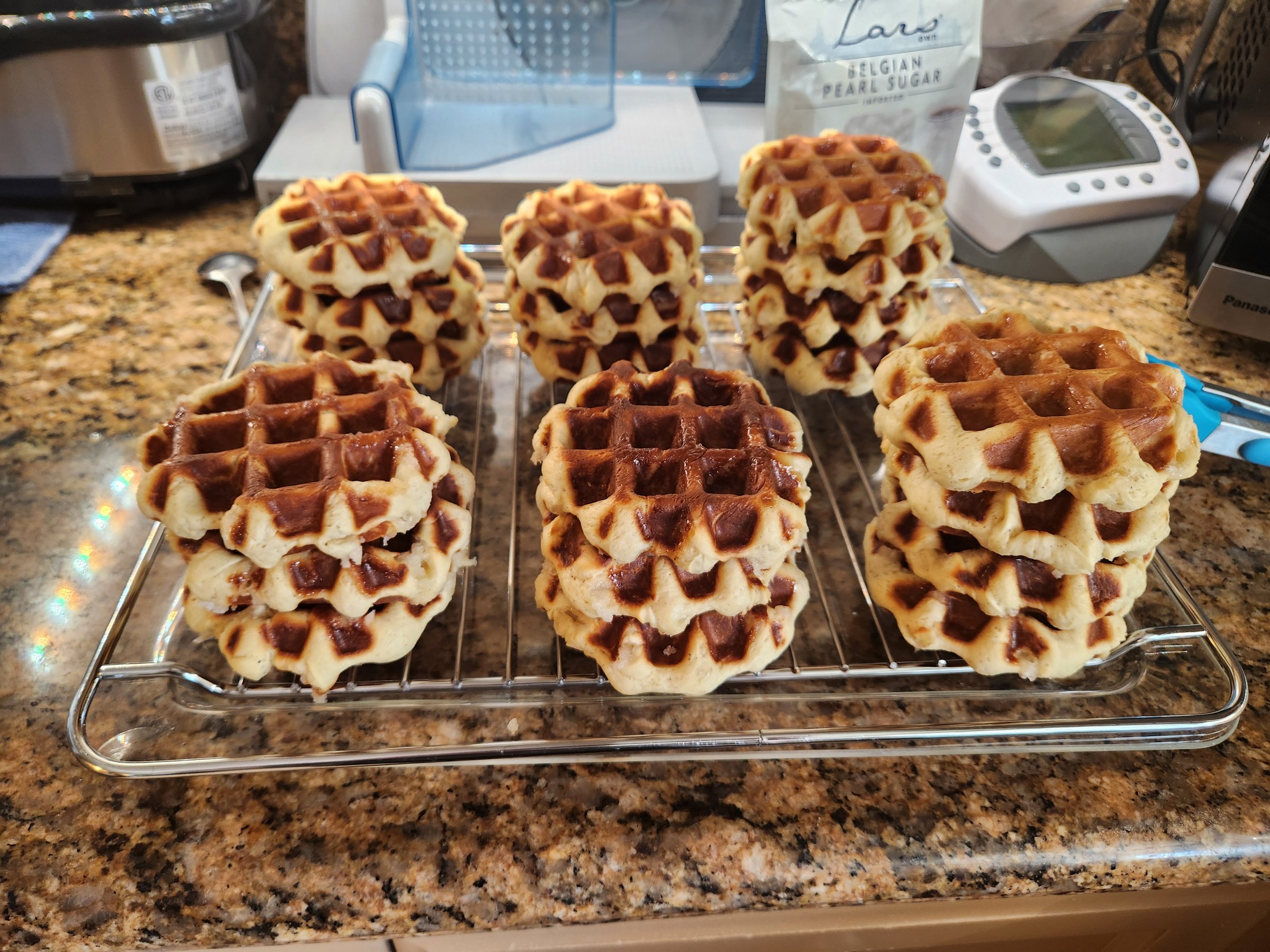 Artisanally baked Liège Waffles are characterized by their delicious thin crispy crust, fluffy yeast dough, and the sweet explosion of pearl sugar from the first to the last bite